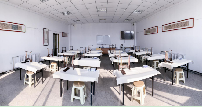 教室每间教室配备65寸液晶电视,打破了传统的教学方式,使用多媒体教学,有利于学生更深入直观地学习知识。配有书架,供学生存放书籍、画袋等。配有冷暖空调,冬暖夏凉。