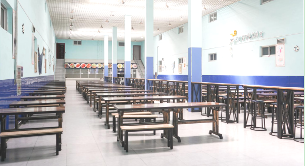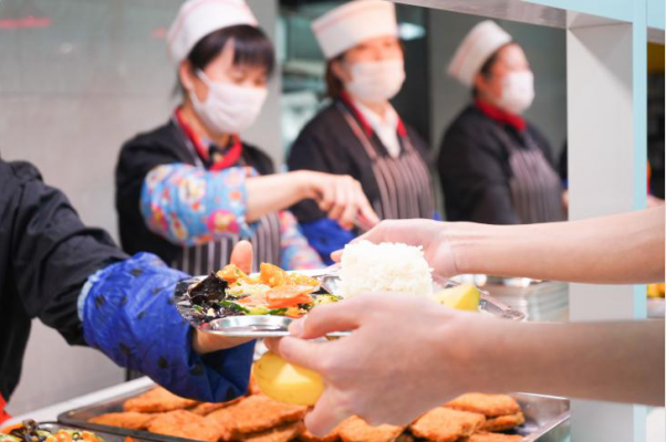 食堂酒店式管理、微笑式服务、星级大厨,设有多种窗口,包括回民窗口、病号窗口等,为学生们提供可口的饭菜,食堂卫生严格把关,饭菜营养搭配合理,饭后有水果、甜点提供,饮食原料统一由河北军粮提供。